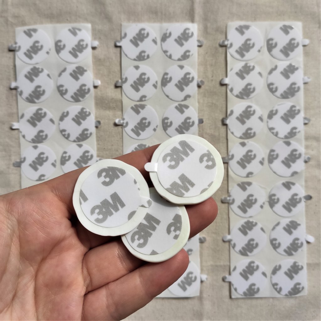 Samolepící oboustranné folie průměru 25mm na nalepení již hotových pečetí. Jsou opatřeny výstupkem pro snadné odloupnutí folie.