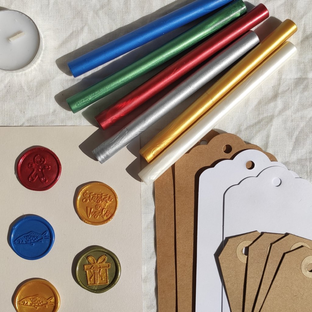 - Flexibilní vosky k rozehřátí v pečetní lžíci nebo v tavné pistoli